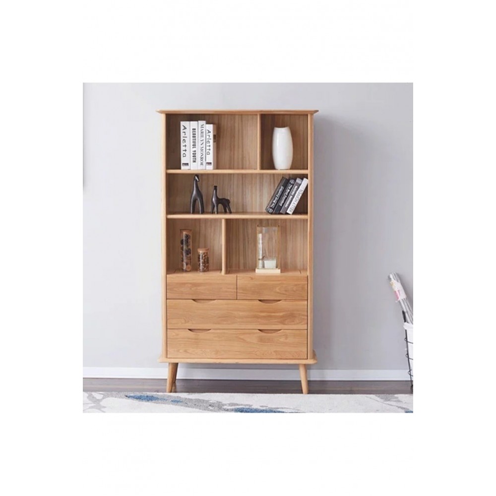 Üç geniş raflı bu kitaplık, kitaplarınız ve dekorlarınız için özel alan sağlar. Eşyalarını düzenli tutmayı sevenler için çekmeceleri de mevcuttur. İstenilen renk ve ebatta üretilebilir. 150 x 32 x 90