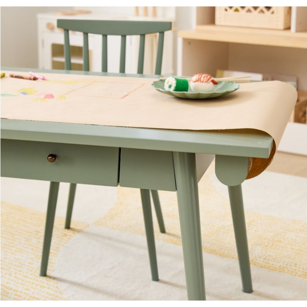 Büyükler için olan masa çocuklara tasarlandı Fırında kurutulmuş katı ve işlenmiş ahşap.; Sorumlu bir şekilde yönetilen ormanlardan elde edilen ahşaptan üretilmiştir .; Çocuğunuzun sağlığına uygun, su bazlı bir kaplama ile kaplanmıştır.; Bu düşük emisyonlu ürün 10.000'den fazla kimyasal ve VOC açısından taranmıştır.; Tüm gerekli ve gönüllü güvenlik standartlarını karşılamak veya aşmak için titizlikle test edilmiştir.; Kağıt rulosu dahil değildir.; ölçüler Y56cm G120 D60 cm demonte olarak gönderilir kurulumu basittir.; dogal ahşap olduğu için renkte ve dokularda farklılık gösterir böylece her ürün kendine özeldir .; isteğe bağlı ayakları uzun yapılıp yetişkinler de kullanabilir